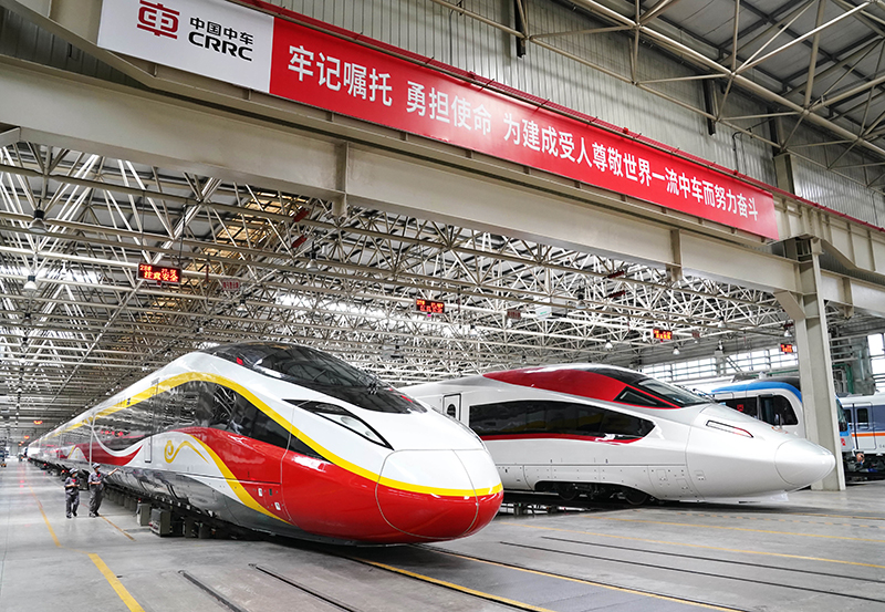 工人在河北省唐山市丰润区中车唐山机车车辆有限公司列车调试车间工作(2022年6月8日摄)。新华社记者 杨世尧 摄