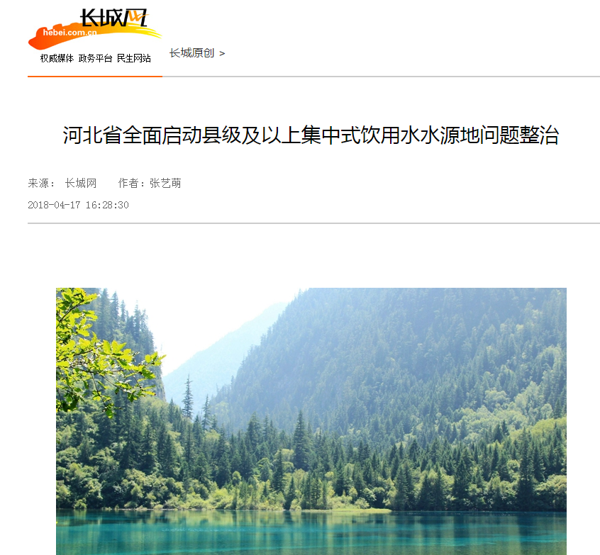 长城网:河北省全面启动县级及以上集中式饮用水水源地问题整治