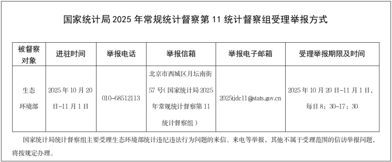 国家统计局2025年常规统计督察第11统计督察组进驻生态环境部开展统计督察