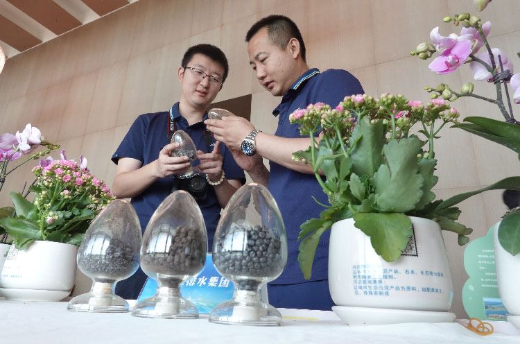企业展示用污泥处理后生产的园艺有机营养土。该活动通过“生态展示、文化传承、科技赋能、全民行动”四个维度,展现京冀协同推进生态文明建设的创新成果。
