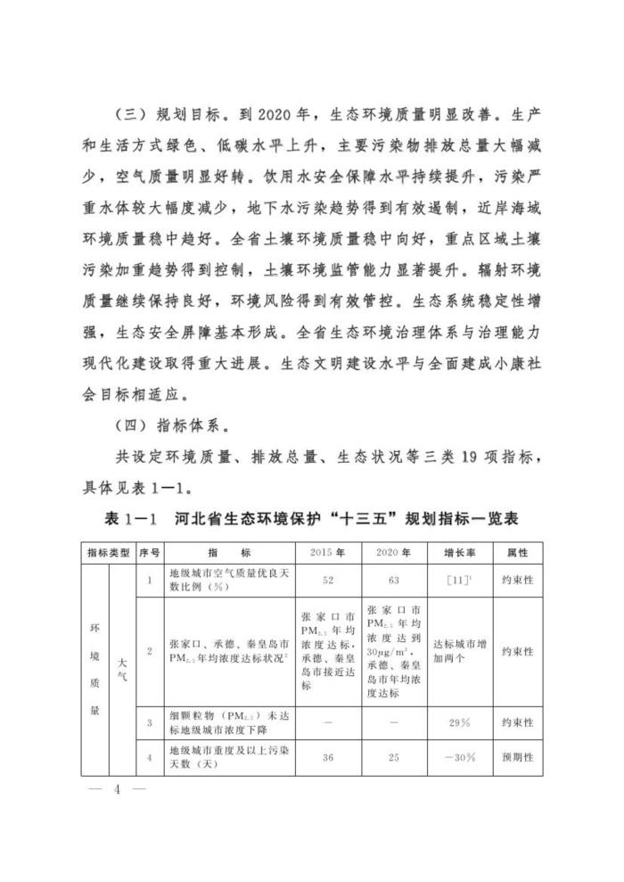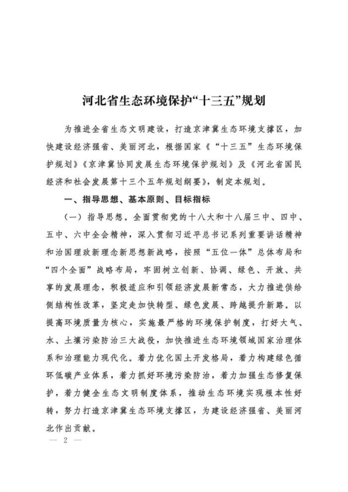河北省人民政府 关于印发河北省生态环境保护 “十三五”规划的通知