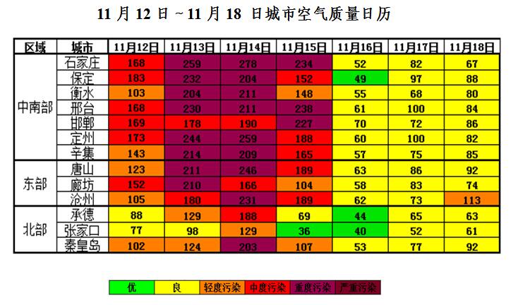 上周(2018年11月12日~11月18日),前期(12~15日)扩散条件较差,我省空气质量以中至重度污染为主,后期(16~18日)扩散条件较好,我省空气质量以良为主。