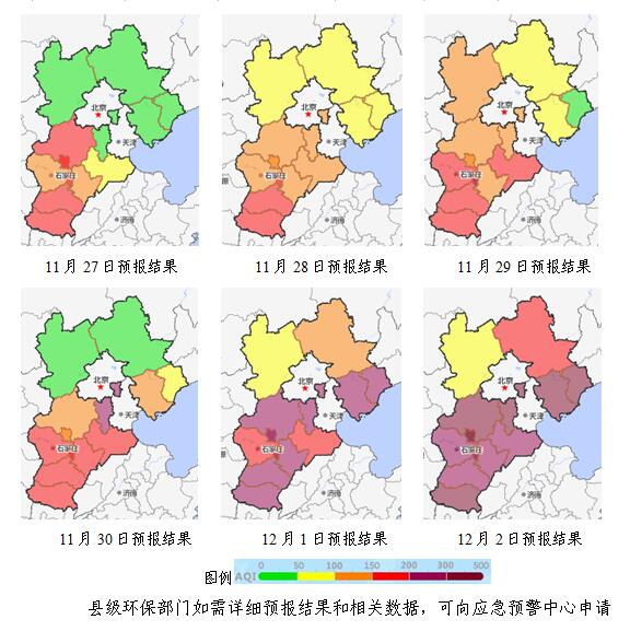 27~30日,受弱冷空气影响,污染形势略有缓解,我省北部空气质量以良至轻度污染为主,中南部以轻至中度污染为主,首要污染物为PM2.5。