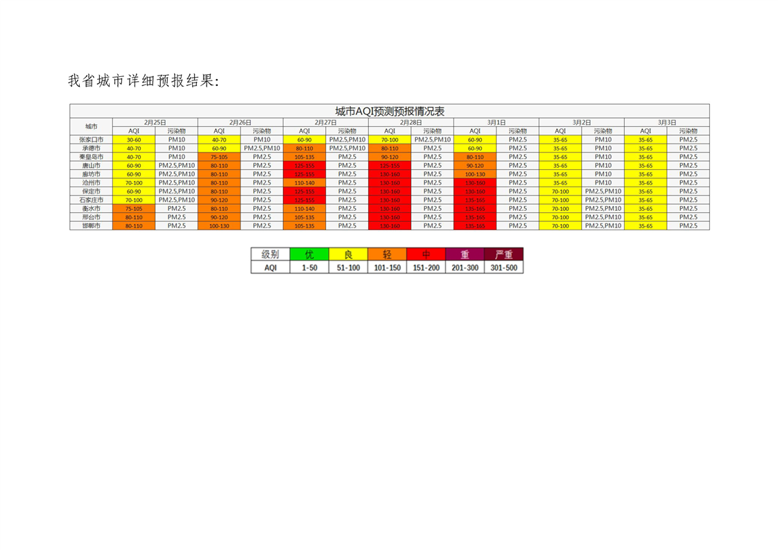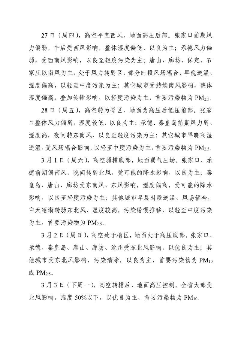 河北省空气质量预测报告周报2025年第9周