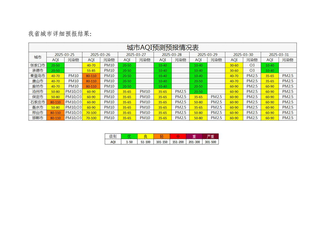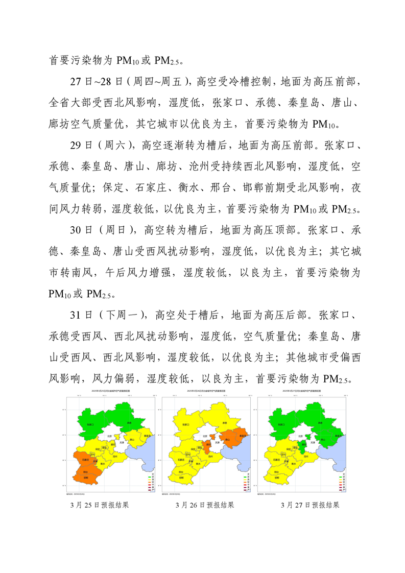 河北省空气质量预测报告(周报)2025年第12周