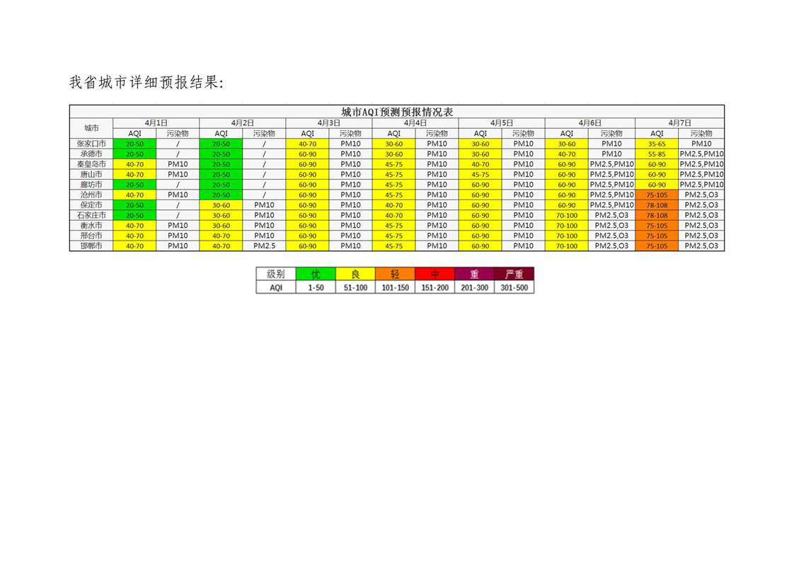 河北省空气质量预测报告周报2025年第14周