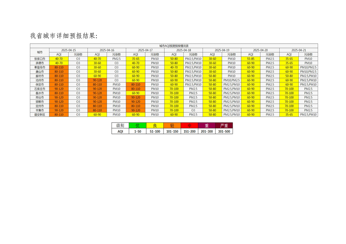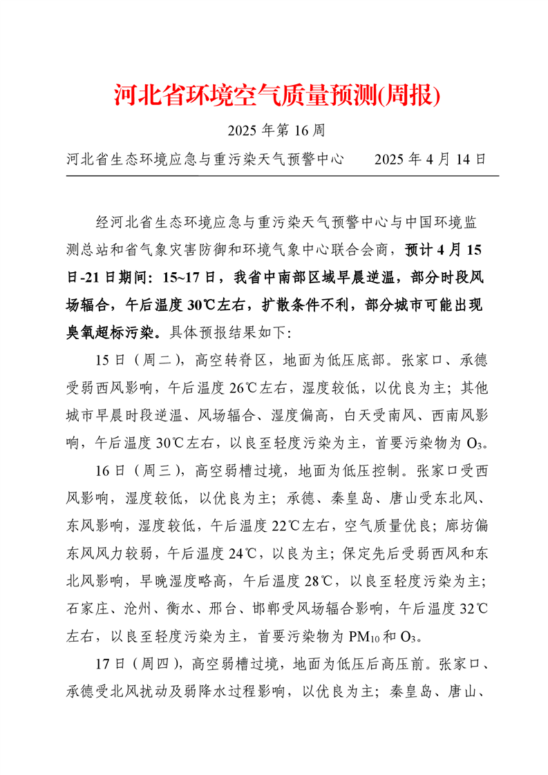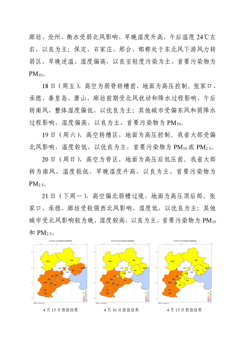 河北省空气质量预测报告(周报)2025年第15周