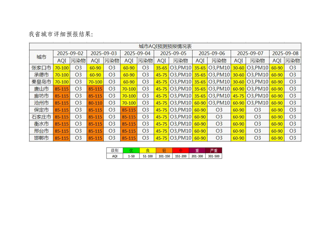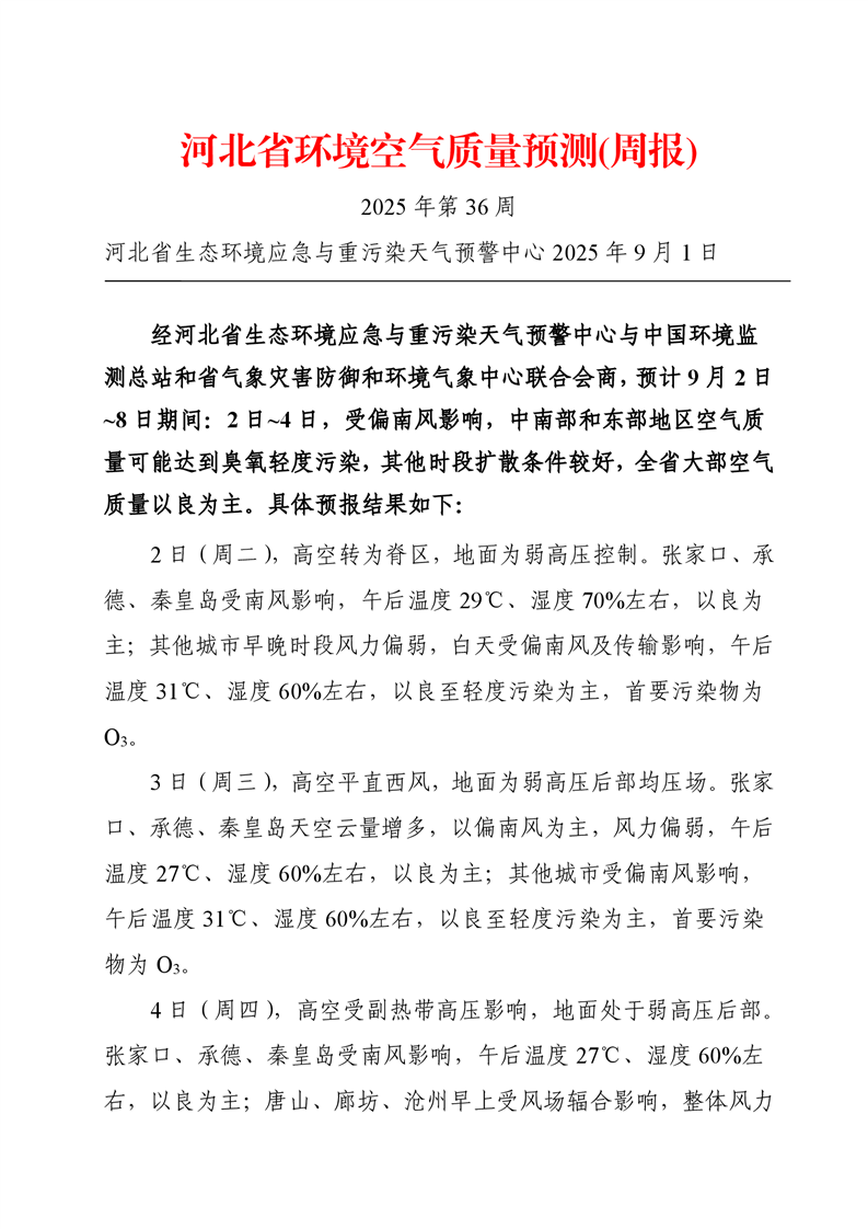 河北省空气质量预测报告周报2025年第36周
