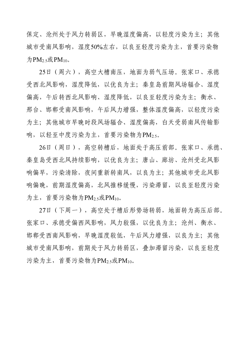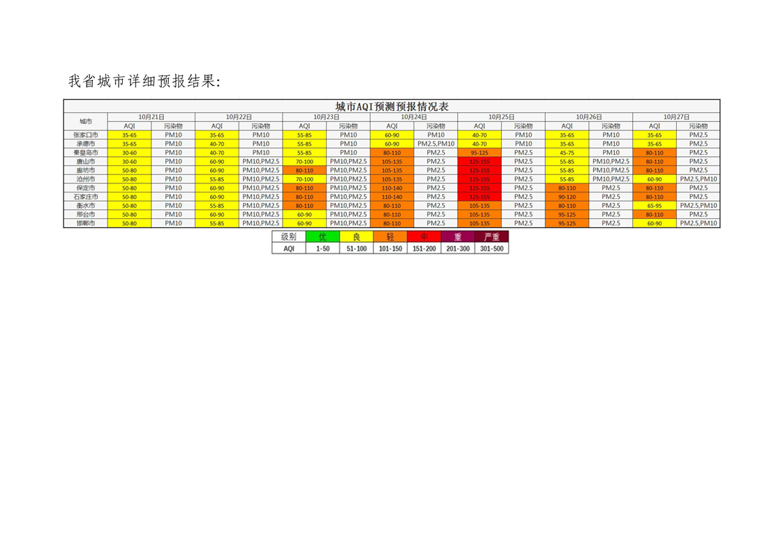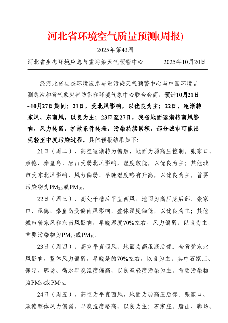 河北省空气质量预测报告周报2025年第43周