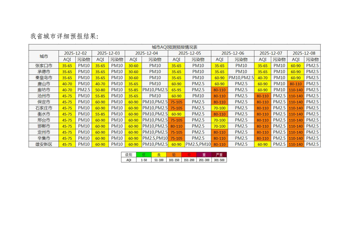 河北省空气质量预测报告(周报)2025年第48周