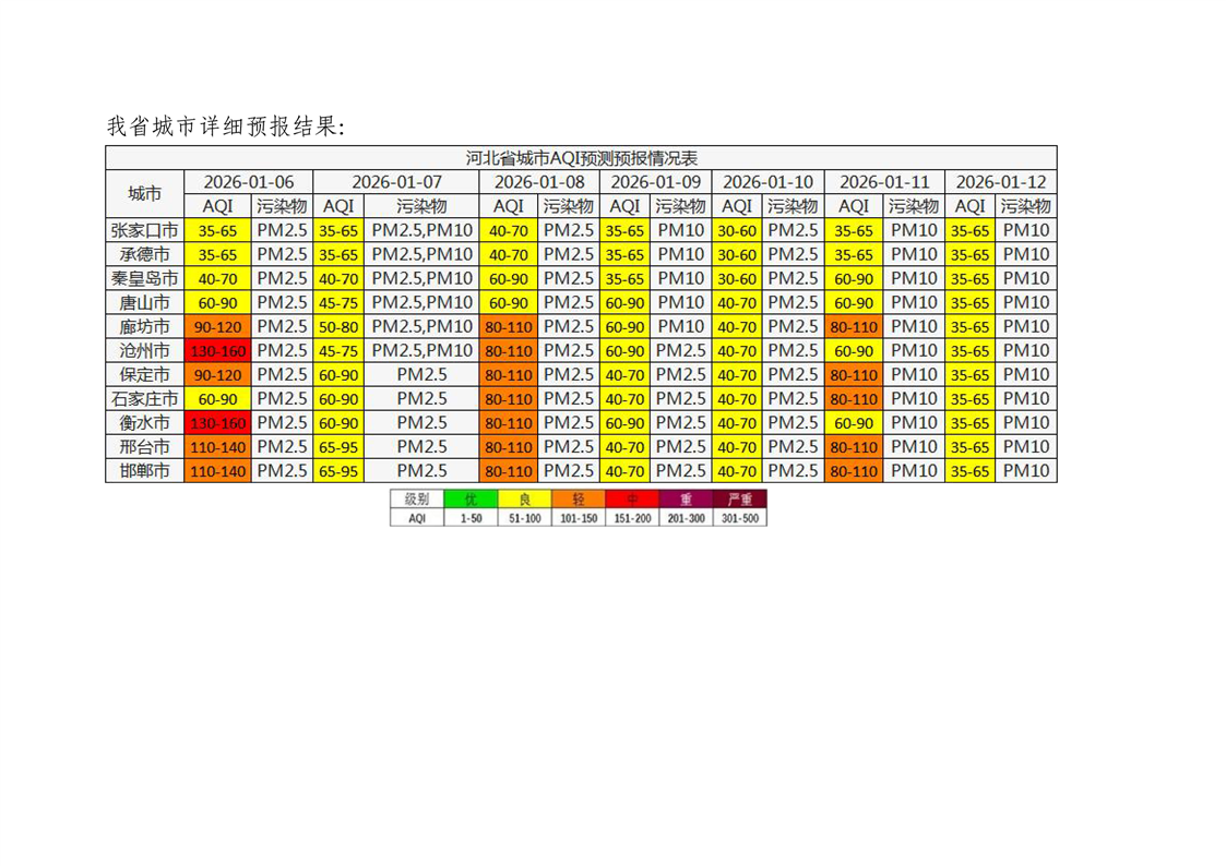 河北省空气质量预测报告(周报)2026年第1周